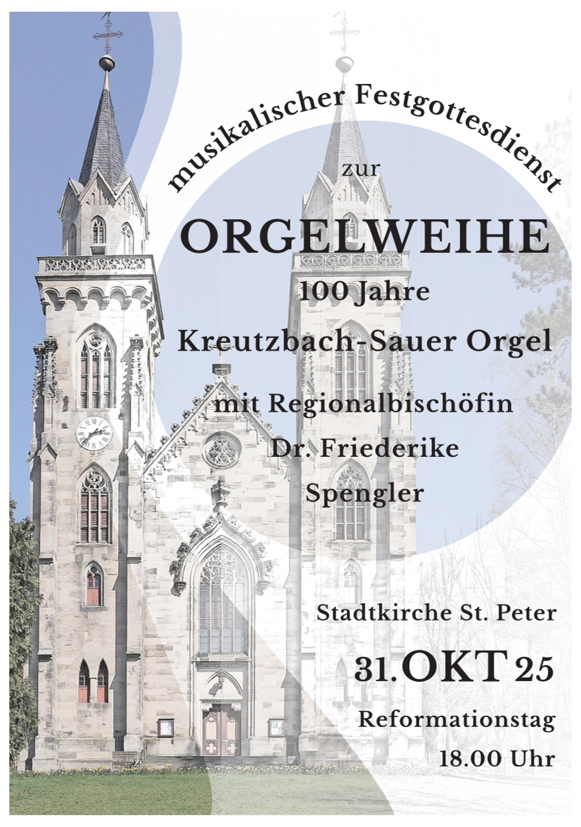 Darum laden wir Sie ganz herzlich zum Festgottesdienst zur Orgelweihe am 31.10.2025 um 18 Uhr in die Stadtkirche St. Peter in Sonneberg ein.
